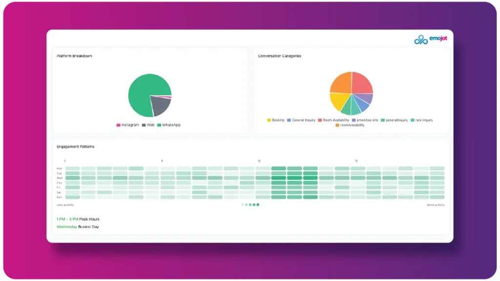 • Automates FAQs, bookings, lead routing, and ticket creation